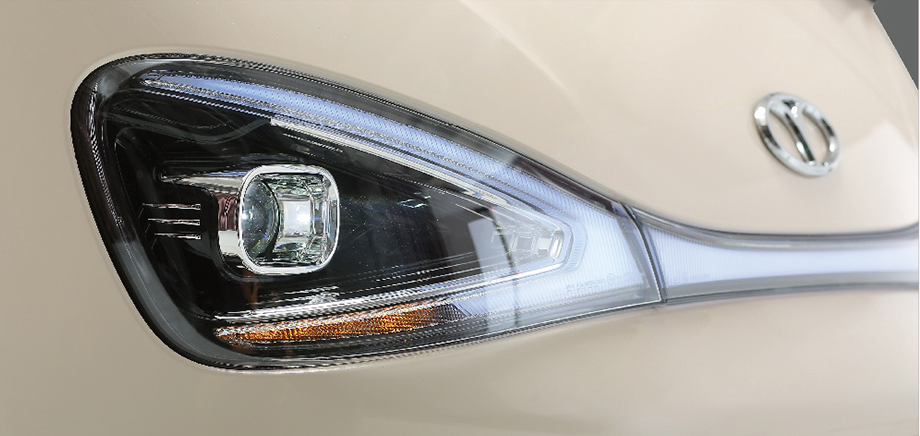 時尚精靈左右單透鏡前大燈,遠近光一體式透鏡,照度達20000cd,搭配前后貫穿式燈光效果,彰顯大氣。